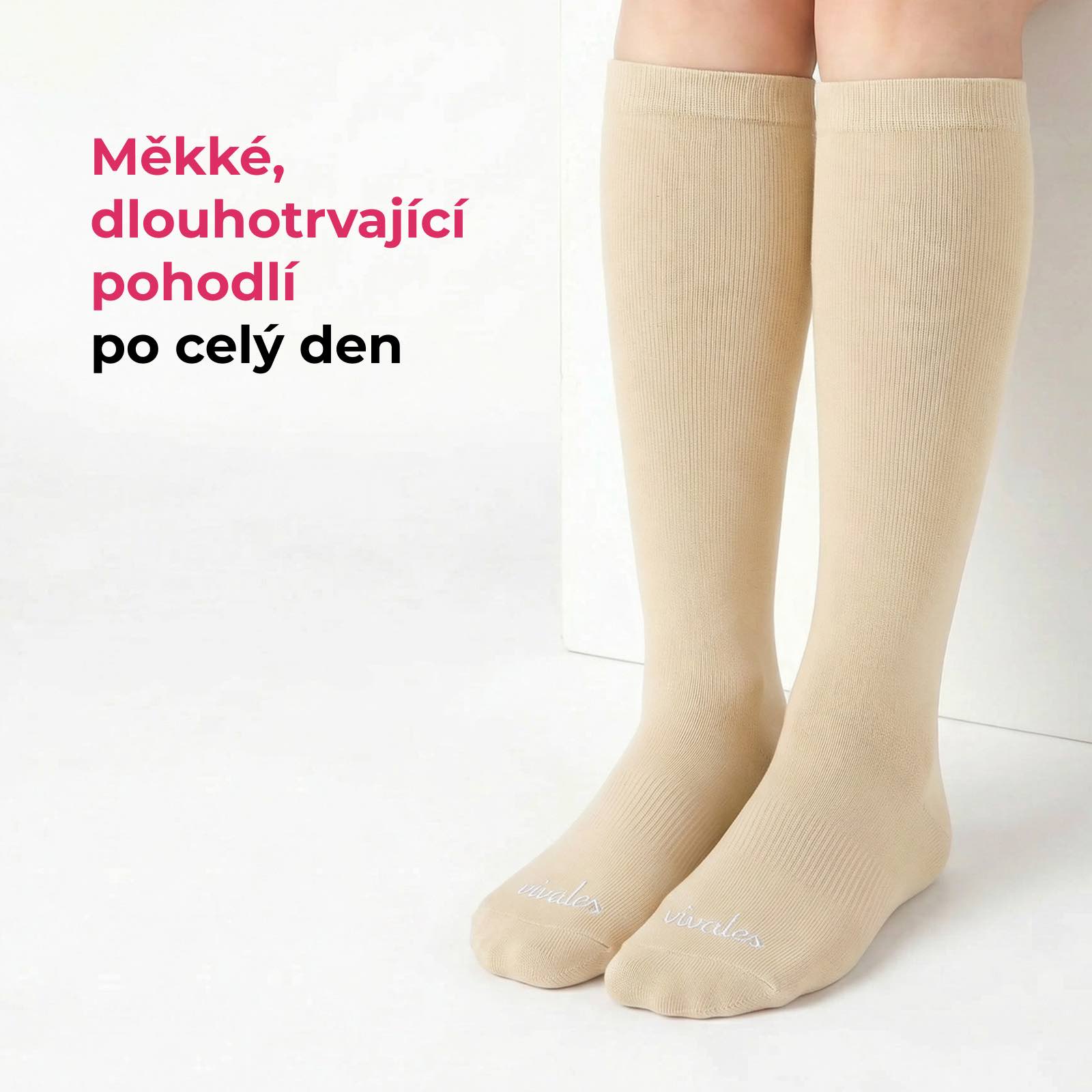 Nabízejí jemnou, stupňovanou kompresi, která zlepšuje krevní oběh, snižuje otoky a ulevuje od nepohodlí.