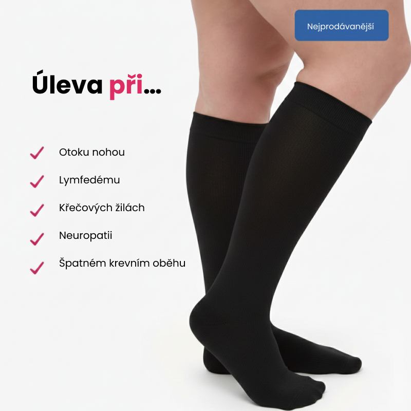Ano! Naše kompresní ponožky jsou navržené tak, aby pomáhaly zmírnit příznaky cukrovky, křečových žil i otoků.