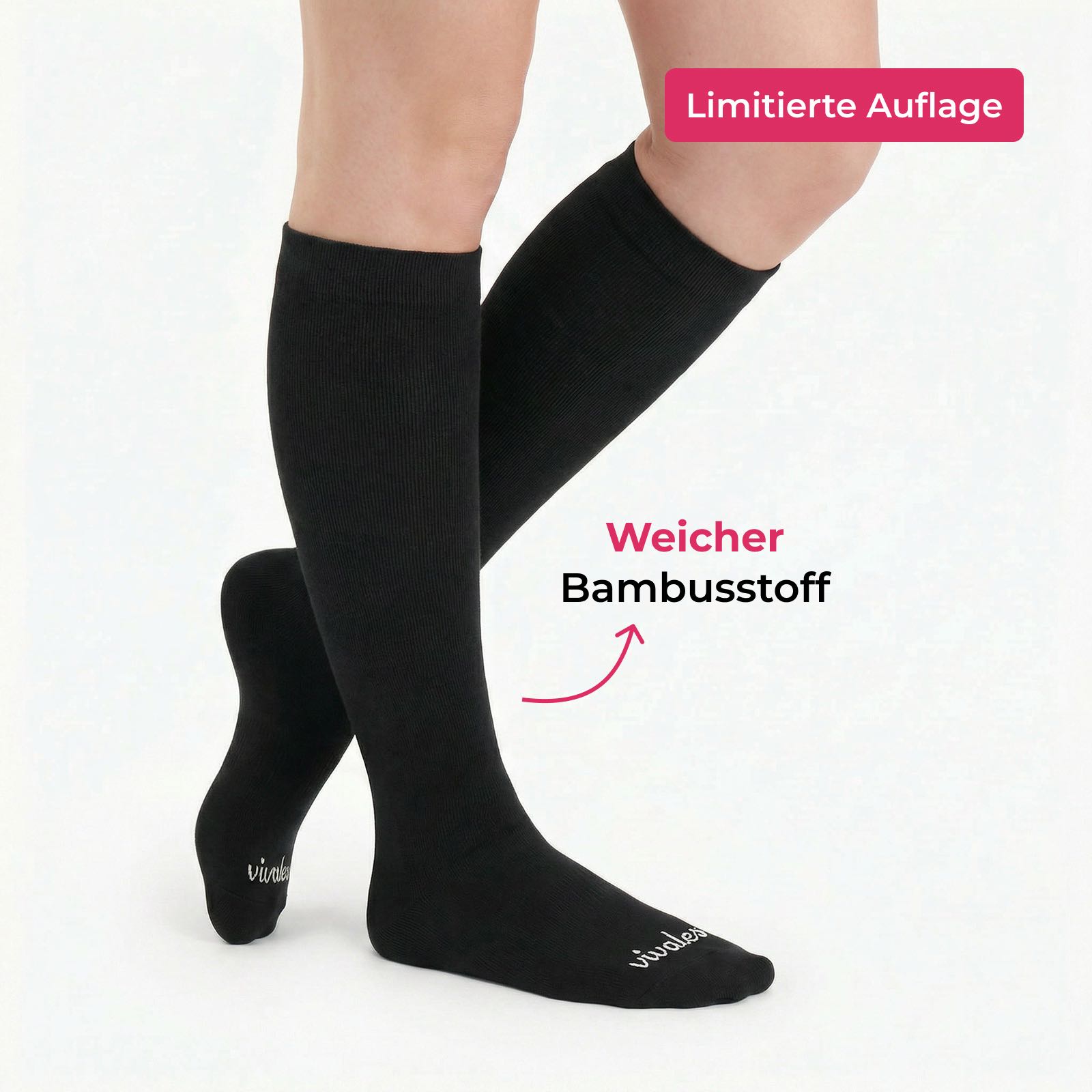Die flexible Bambusmischung passt sich deinen Waden an, lindert Schwellungen und Schweregefühl und sorgt für angenehmen Tragekomfort bei der Arbeit, auf Reisen und an langen Tagen auf den Beinen.