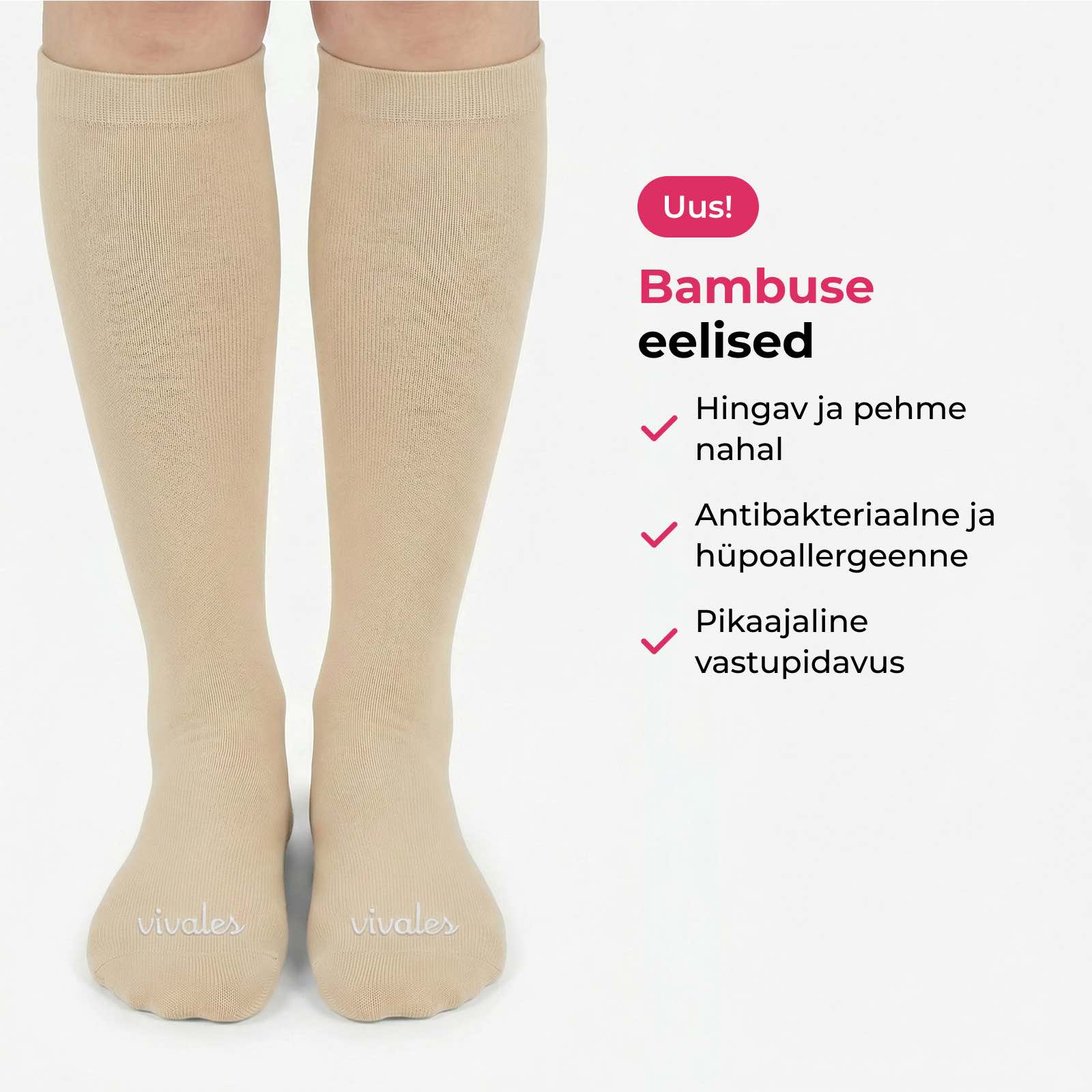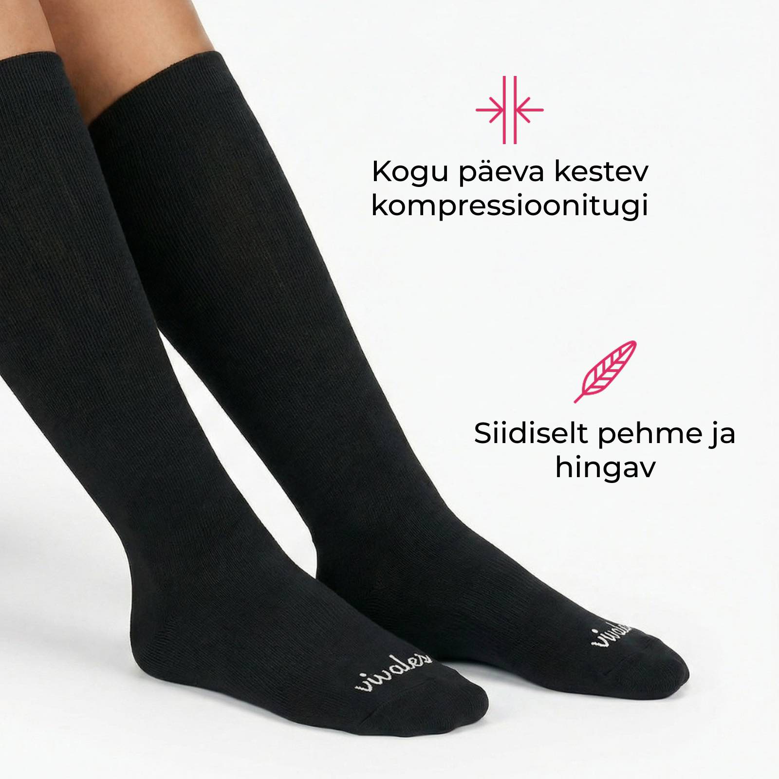 Hingav, bambuserikas kude tundub nahal siidine ning aitab vähendada turset, raskustunnet ja igapäevast ebamugavust, nii et su jalad tunneksid end juba esimesest kandmiskorrast kergemana, rahulikumana ja paremini toetatuna.