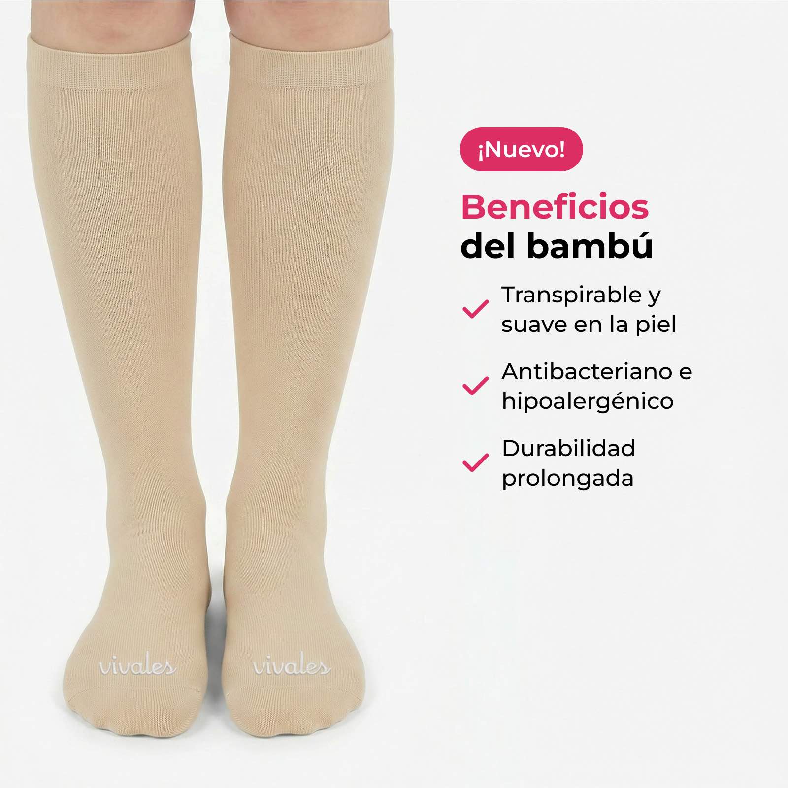 Las fibras de bambú son suaves y agradables incluso en pieles sensibles, secas o fácilmente irritables, ayudando a que tus piernas se mantengan frescas y cómodas todo el día.