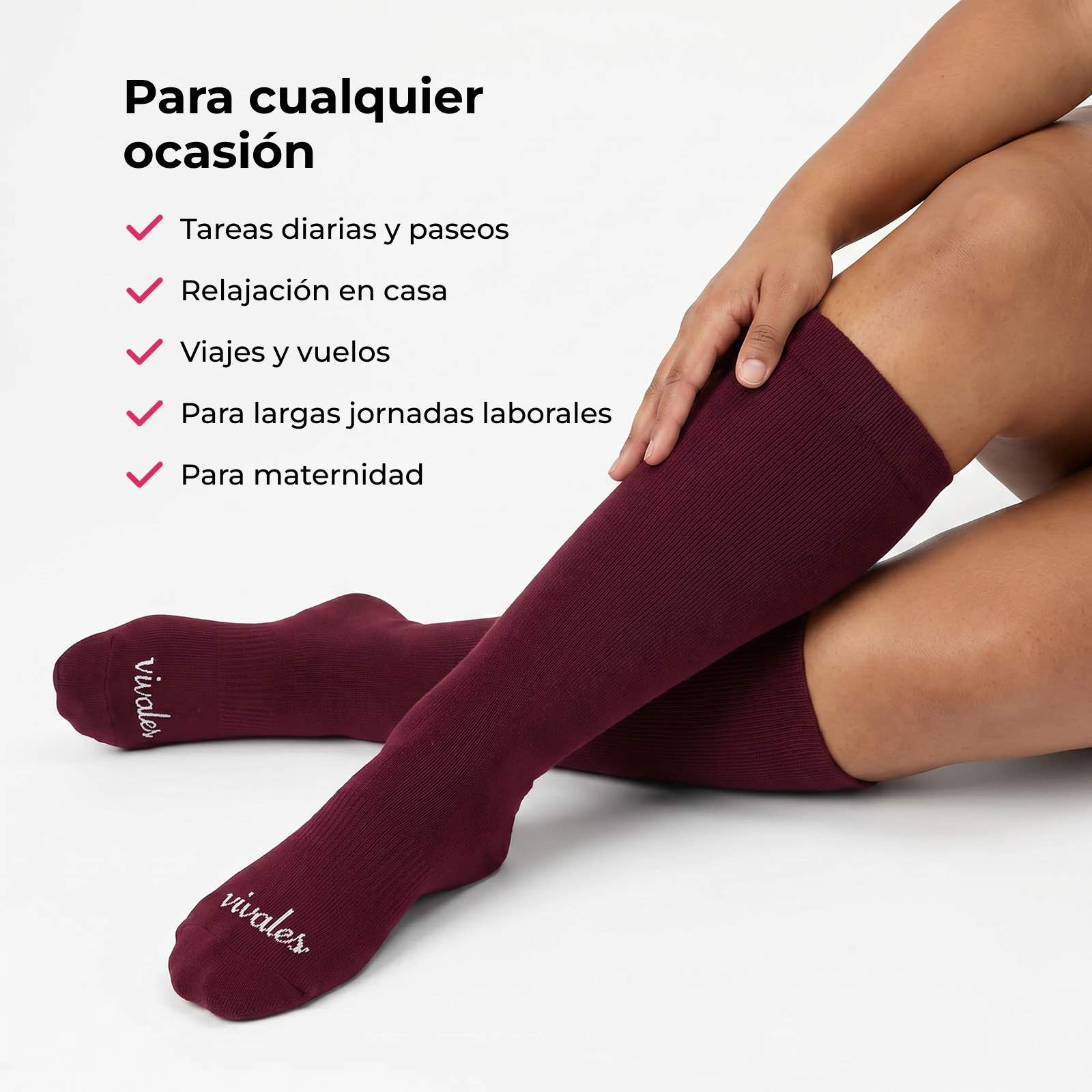Los calcetines de compresión BAMBOOLES aplican una compresión gradual que ayuda a impulsar la sangre hacia el corazón, donde debe estar. Con el uso diario, reducen la acumulación de líquidos, favorecen una circulación más saludable y mantienen tus piernas más ligeras, jóvenes y llenas de energía.