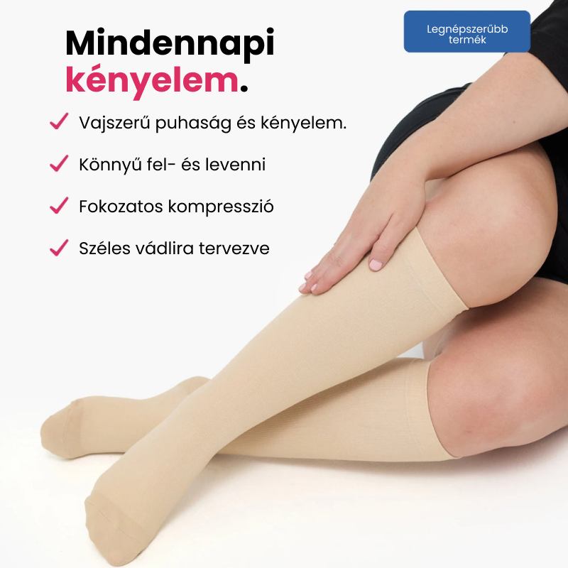 Gyengéd, fokozatos kompressziót biztosítanak, amely javítja a vérkeringést, csökkenti a duzzanatot és enyhíti a kellemetlenséget.
