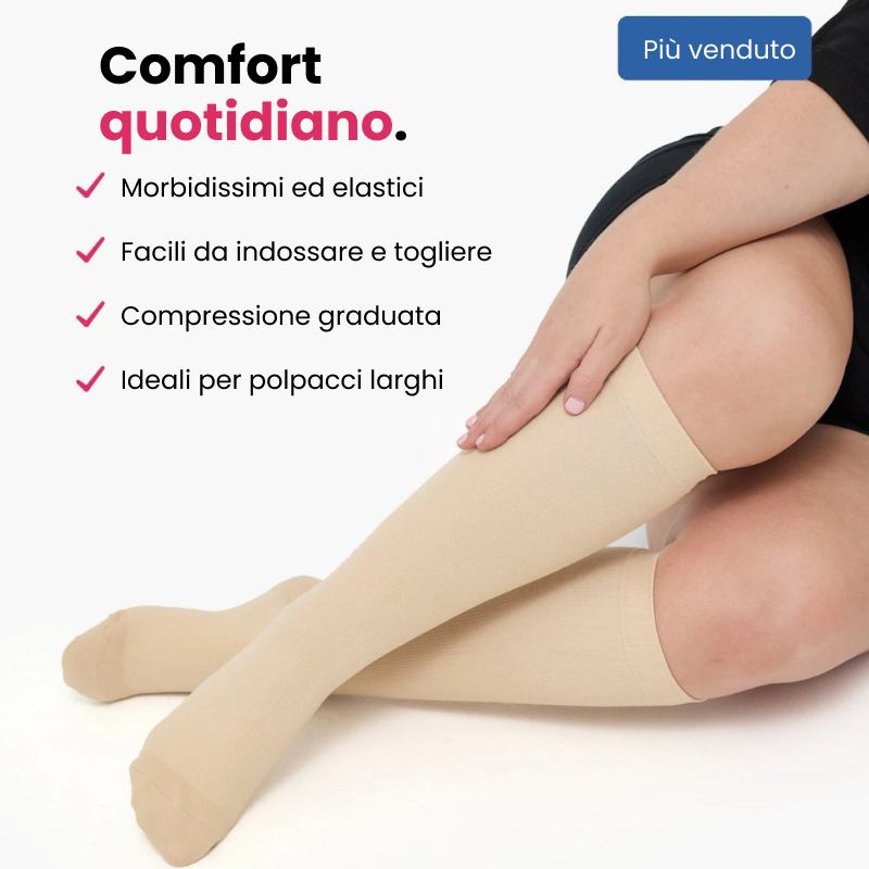 Indossale al mattino e senti subito il sollievo: aderiscono perfettamente senza stringere, riducendo dolore e gonfiore e dandoti più energia per tutta la giornata.