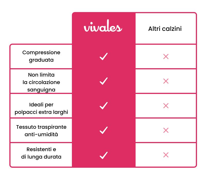 Le calze a compressione Vivales utilizzano una compressione graduata da 15 a 20 mmHg per contrastare il gonfiore.