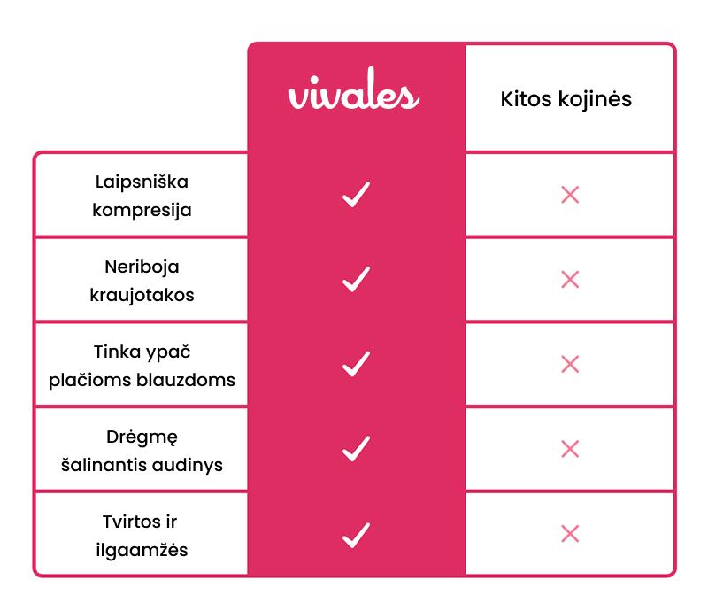Su daugiau nei 8 000 penkių žvaigždučių atsiliepimų, „Vivales“ – patikimas pasirinkimas moterims, vertinančioms patogumą ir atramą kiekviename žingsnyje.