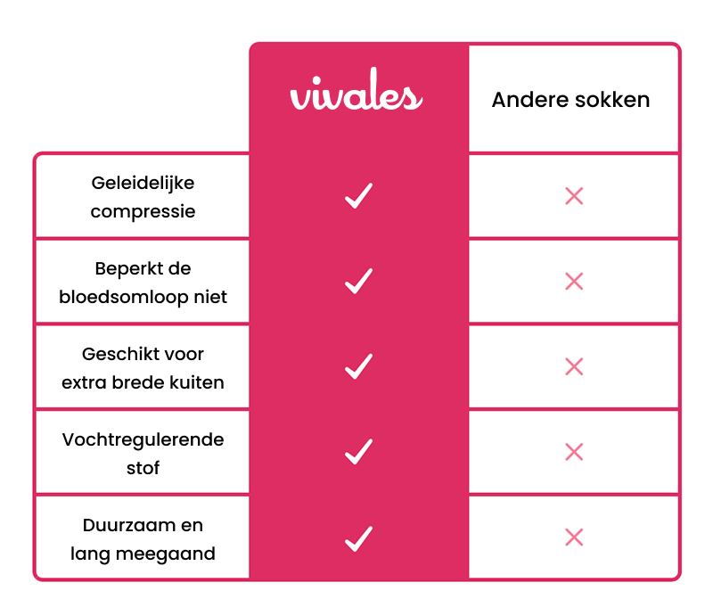 Vivales compressiesokken bieden een geleidelijke druk van 15–20 mmHg om zwelling tegen te gaan.