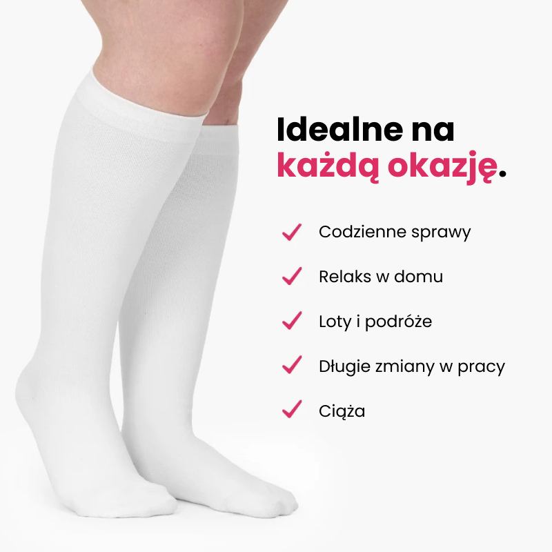 Załóż je rano i poczuj ulgę — dobrze przylegają, ale nie uciskają, dzięki czemu odczujesz mniejszy ból, mniej opuchnięć i więcej energii przez cały dzień.