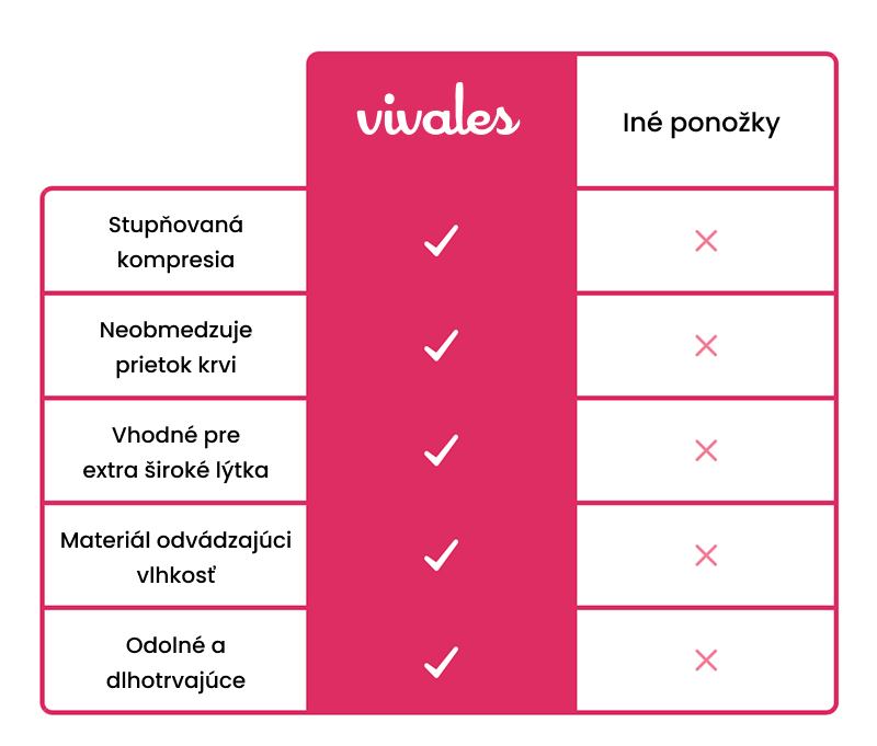 Kompresné ponožky Vivales využívajú stupňovitú kompresiu 15–20 mmHg na zníženie opuchov.